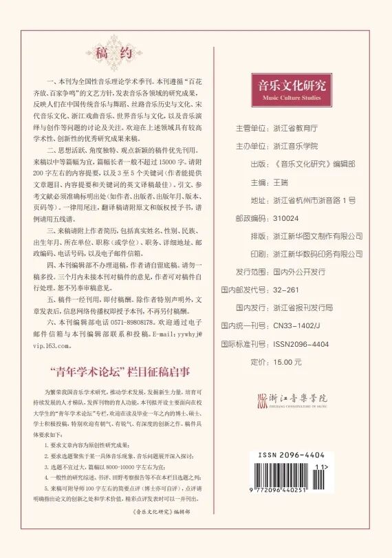 《音乐文化研究》创刊于2017年10月,主要刊载音乐文化研究成果与音乐艺术精品力作,致力于弘扬民族音乐文化、探索音乐艺术规律、促进音乐传播交流,以服务社会主义文艺繁荣创新发展。
