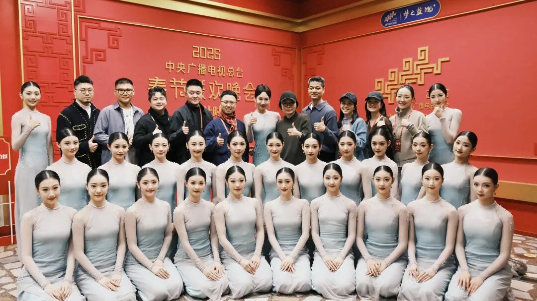 除演出《喜雨》外,舞蹈学院还有20名学生深度参与春晚主会场歌舞节目。她们与周慧敏、刘敏涛等10位艺人同台,以柔婉身段演绎歌舞节目《立春》,在方寸舞台间铺展江南早春的诗意长卷;与白鹿、丁禹兮等8位青年演员同台,呈现活力歌舞《串门指南》,以明快节奏与亲和台风将新春的热闹与青春的朝气洒满荧屏。此外,学生们还参与了压轴节目《难忘今宵》的演出。从幕后到台前,从排练厅到央视演播厅,这群年轻的浙音人用专业与热情,在春晚的舞台上留下了属于自己的青春足迹。