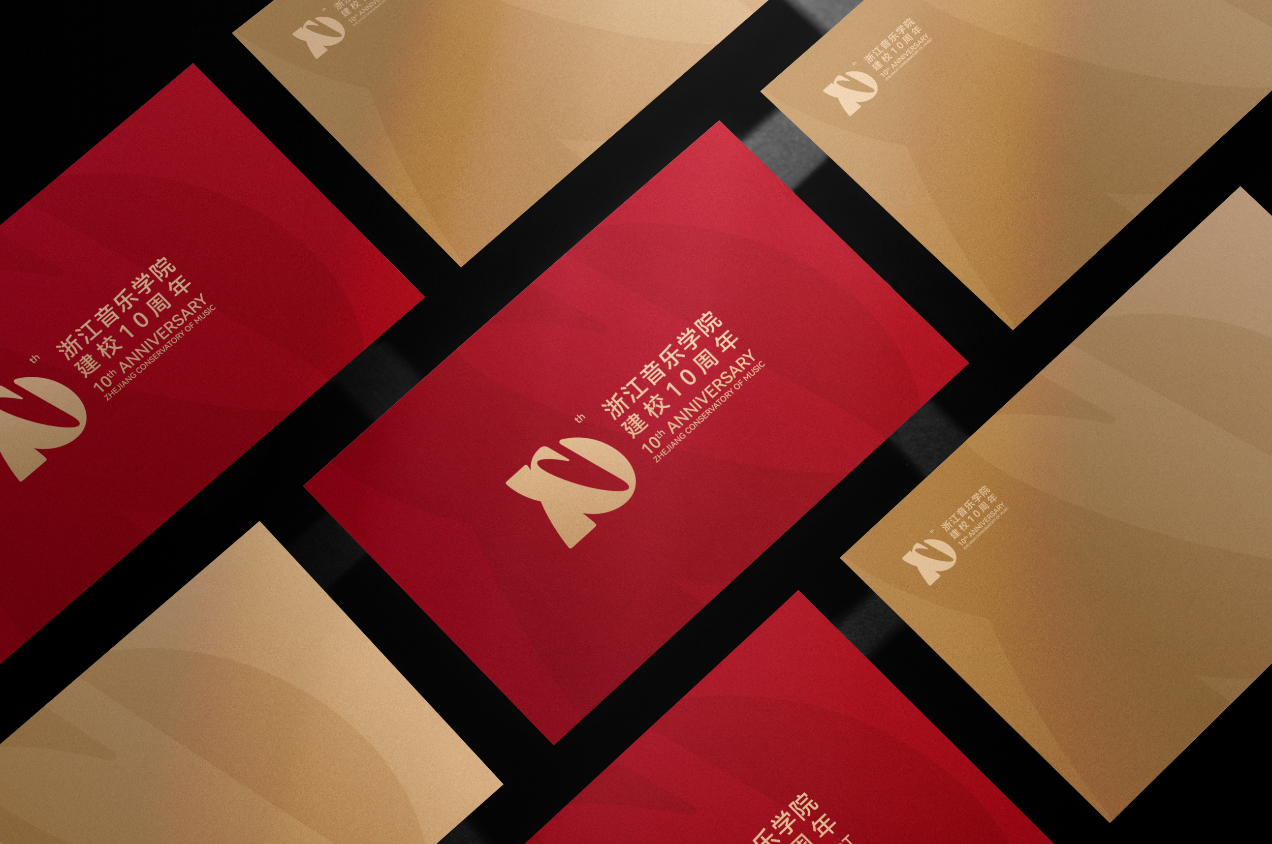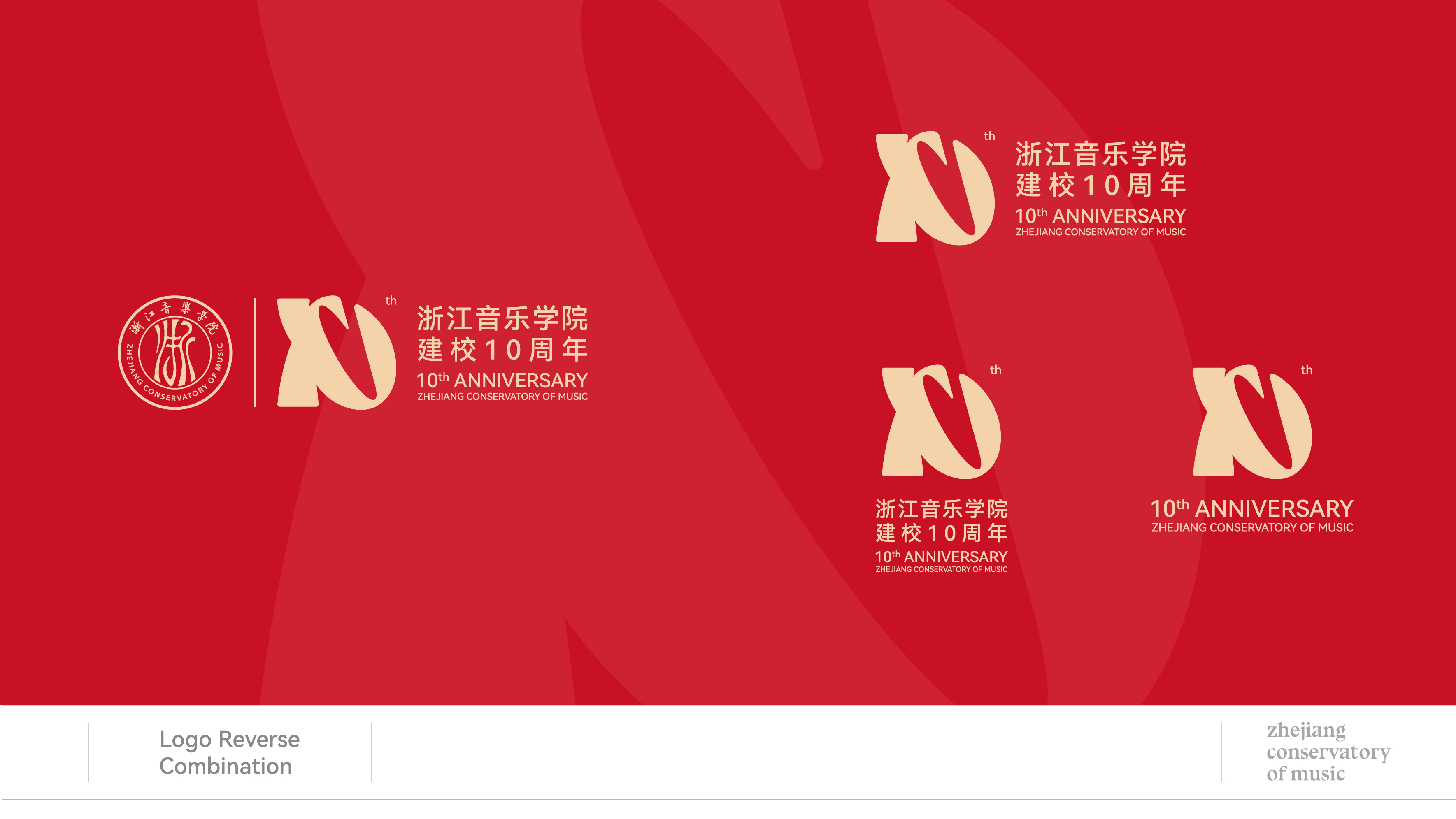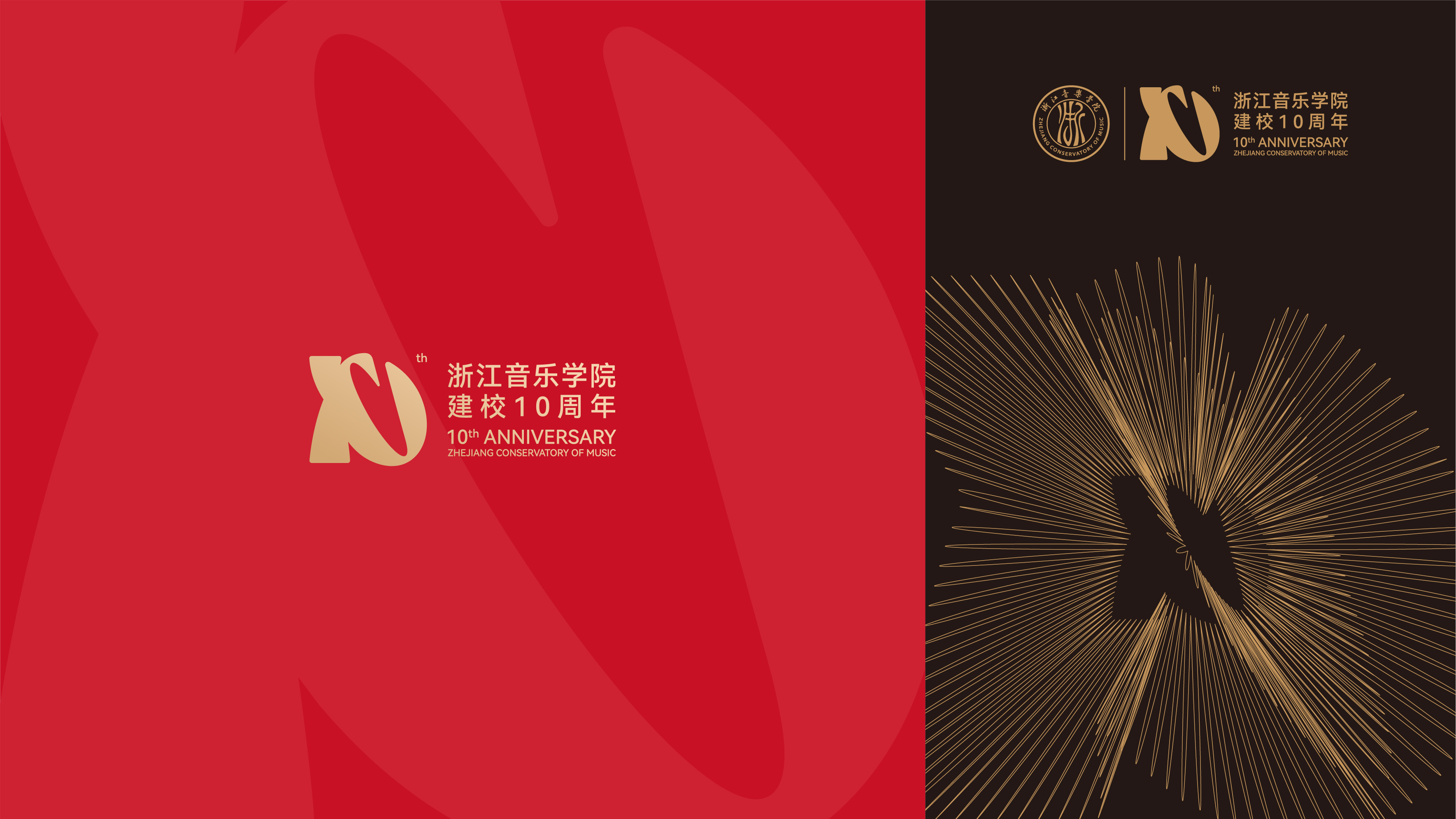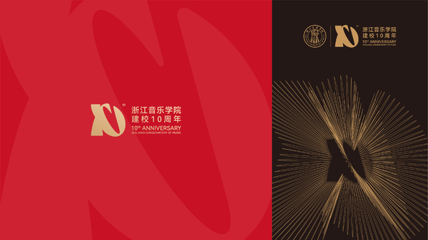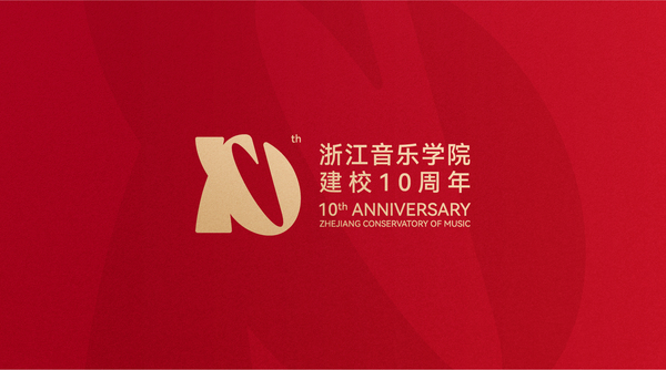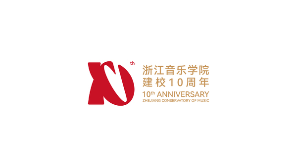 浙江音乐学院10周年校庆标识,以“弦歌十载,尽善致远” 为核心设计理念,将具象符号与数字“10”创意同构,形成独具韵味的视觉形象。