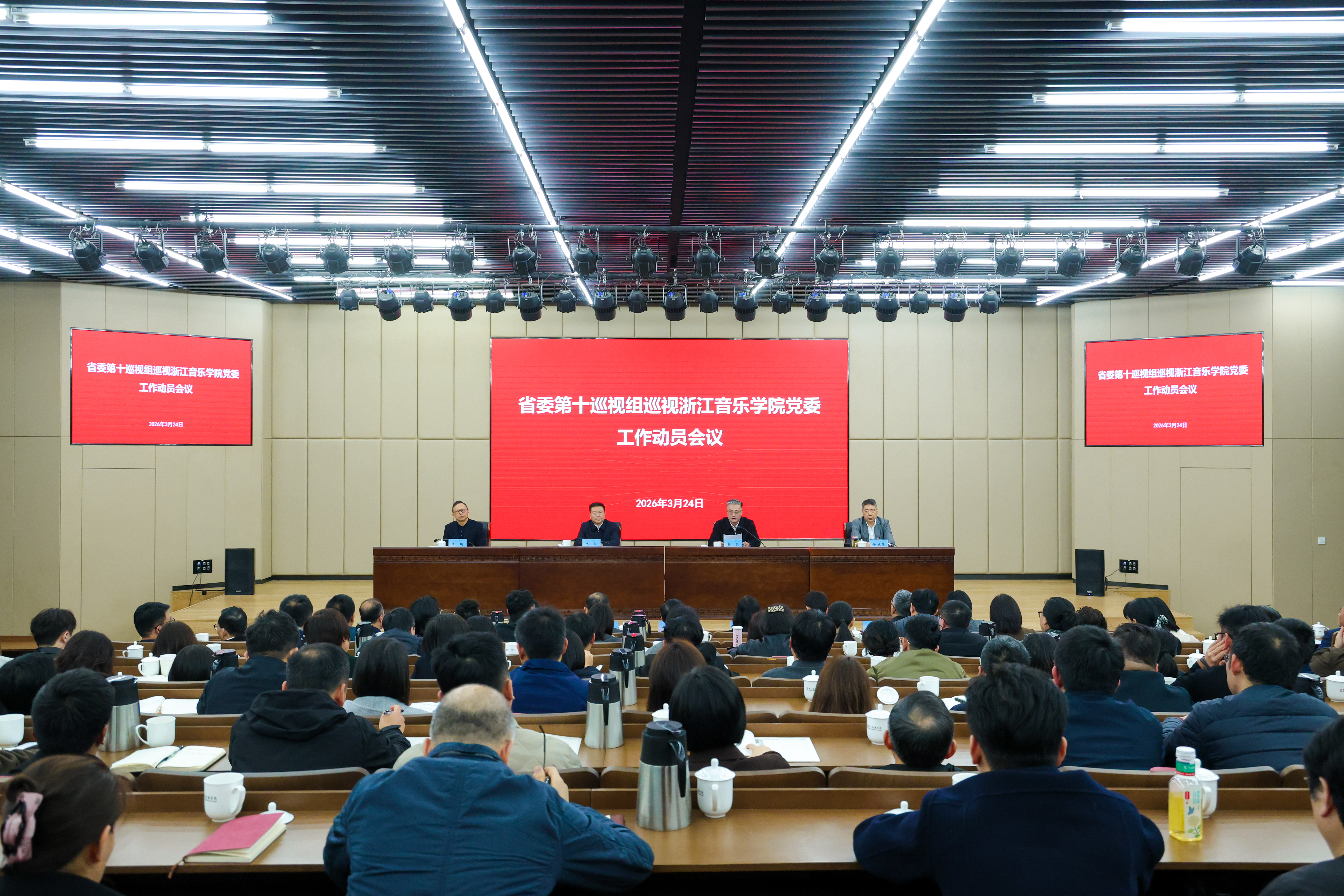 根据省委统一部署,2026年3月24日下午,省委第十巡视组巡视浙江音乐学院党委工作动员会议召开。会上,巡视组组长陈灿作了动员讲话,对深入学习贯彻习近平总书记关于巡视工作重要论述,全面落实党的二十届四中全会精神和省委十五届八次全会部署,高质高效完成好省委第八轮巡视工作提出要求。浙江音乐学院党委书记薛亮主持会议并作表态发言。